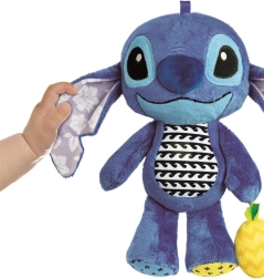 Adorable compagnon en peluche STITCH pour les tout-petits, associant matières douces, textures variées et détails colorés pour stimuler les sens. Comprend un hochet, des oreilles bruissantes, une lanière pour l’accrocher à la poussette et des éléments souples faciles à saisir par de petites mains.