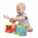 Ce transporteur automobile coloré CLEMENTONI ravira tous les petits conducteurs. En mode camion, les enfants transportent la petite voiture et découvrent le monde des véhicules réels ; en mode piste, le véhicule dévale le circuit, se retourne et fait de joyeux tonneaux – le plaisir de jouer et d’apprendre réunis.