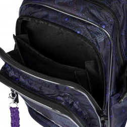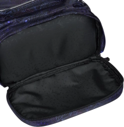 Les trois compartiments séparés avec organiseur intérieur permettent un rangement clair des fournitures scolaires et une répartition équilibrée du poids. La poche interne rembourrée accueille en toute sécurité un ordinateur portable ou une tablette jusqu’à 15". Le compartiment avant avec organiseur pratique et mousqueton amovible pour clés facilite l’usage au quotidien. S’ajoutent une poche secrète renforcée au fond, des poches latérales pour bouteille et de nombreux éléments réfléchissants pour une meilleure visibilité.