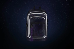 Un design élégant aux motifs violets et noirs est complété par un pendentif tendance. Le sac offre un volume de 29 l, une capacité de charge de 7 kg et a été testé et certifié par un laboratoire d’essais accrédité, répondant ainsi aux exigences de qualité et de sécurité.
