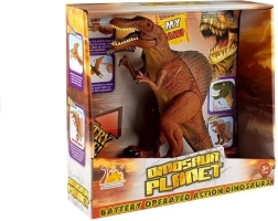 Le jouet possède un crâne long et droit et une silhouette massive et musclée. Il est alimenté par des piles 1,5 V de type « AA », incluses dans le set. Une fois activé, le grand dinosaure se met à marcher et rugir. Des effets lumineux, tels que des yeux clignotants, intensifient encore cette expérience hors du commun.