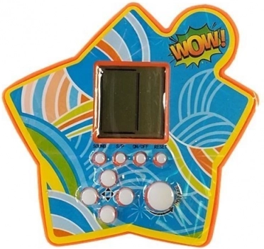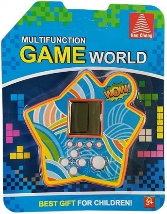 Le jeu électronique de poche en forme d’étoile offre un divertissement intemporel avec des pièces qui tombent. Le but est de faire pivoter et déplacer les formes pour remplir une ligne entière – elle disparaît ensuite et libère de la place pour continuer. À chaque ligne supprimée, la vitesse augmente et le défi pour votre concentration et votre stratégie grandit.
