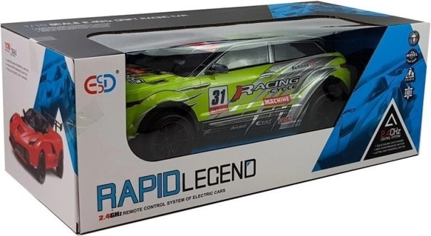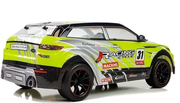 Carrosserie aérodynamique et légère avec décals sportifs verts, elle ressemble à une véritable voiture de course et impressionne en action.