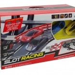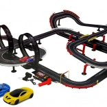 Découvrez la piste de course parfaite pour les jeunes pilotes ! Ce set Slot-Car spectaculaire est doté d’un socle spécial avec rails de guidage sur lesquels roulent les voitures de course fournies.