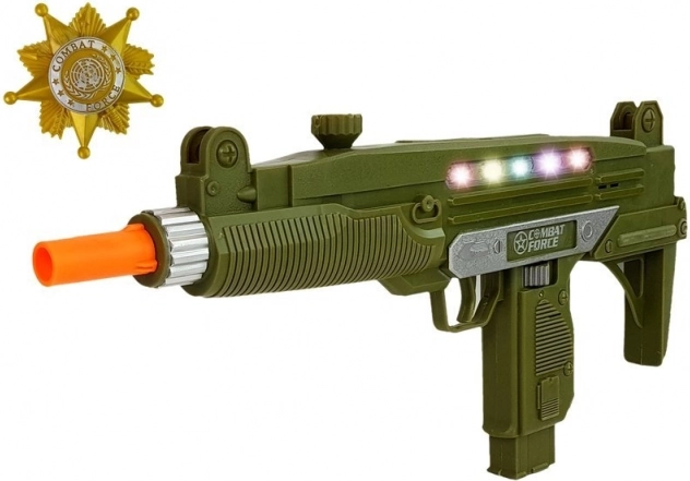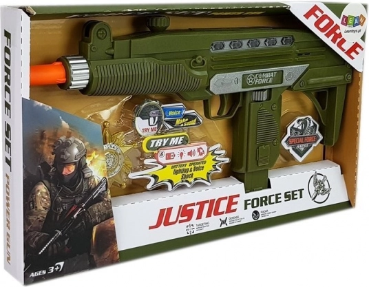 Ce grand pistolet pour enfants de couleur vert foncé s’illumine avec des LED, émet des sons de tir authentiques et active un effet de vibration à l’appui de la détente. Le set comprend également un badge, grâce auquel le petit héros se transformera facilement en membre d’unités spéciales. Un jouet idéal pour compléter un costume de carnaval comme pour les aventures quotidiennes.