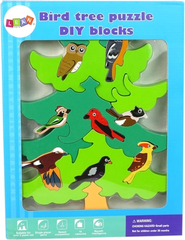 Puzzle en bois arbre avec oiseaux de la forêt DIY