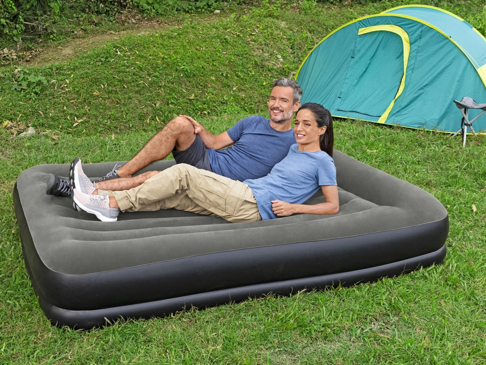 Le matelas de voyage est destiné à une utilisation intérieure et extérieure. Il est fabriqué dans un matériau résistant, ce qui le rend durable et à l’épreuve des dommages. La partie supérieure est recouverte d’un matériau floqué doux. Le matelas s’adapte au corps et est idéal sous une tente ou à la maison comme lit d’appoint pour les invités. Grâce à sa surface de couchage confortable, à sa construction robuste et à l’oreiller intégré, un sommeil réparateur est à portée de main. La structure interne de ce lit est réalisée en matériau Tritech™, qui assure résistance et solidité tout en permettant au matelas de conserver sa forme, quel que soit le nombre de gonflages et de dégonflages.