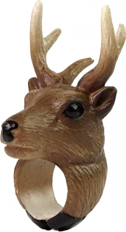Découvrez une bague ludique avec une tête de cerf réaliste et de grands bois. Les enfants inventeront leurs propres histoires et saynètes, et apprendront à reconnaître les animaux de façon amusante. La bague est agréablement légère, tient bien au doigt et, grâce aux peintures non toxiques, convient à un usage enfantin.