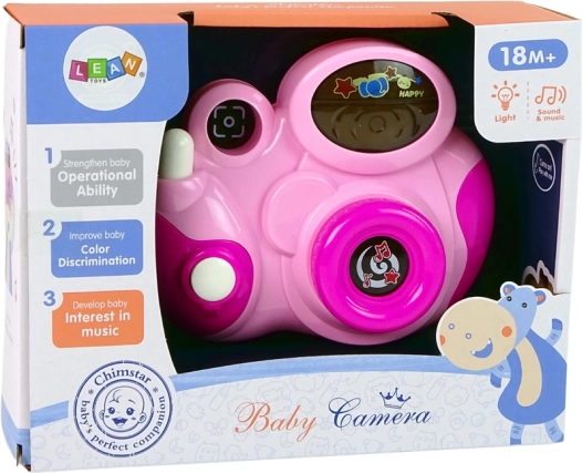 L’appareil photo interactif rose ravira les petits explorateurs dès 18 mois. Il propose des effets lumineux, un bruit d’obturateur et 3 mélodies joyeuses qui développent la coordination œil-main et les sens.