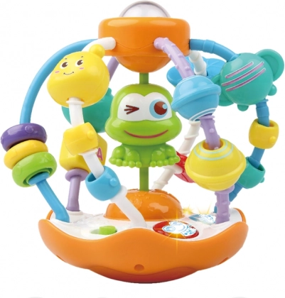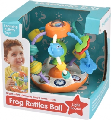 Cette balle interactive colorée est un excellent outil pour le développement global des tout-petits. Grâce à ses formes, couleurs, sons et lumières, elle stimule la vue, l’ouïe et le toucher, et développe naturellement la pensée logique. Au centre se cache une joyeuse grenouille qui se balance de haut en bas lorsqu’on secoue la balle, et au sommet vous trouverez une petite bille rotative pour encore plus de découvertes.