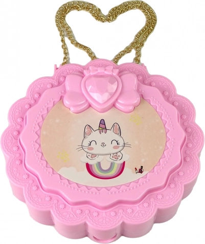 L’emballage rose à motif licorne avec anse en forme de cœur fera plaisir à toute petite coquette tout en rangeant pratiquement tous les accessoires.