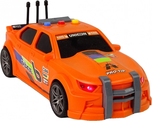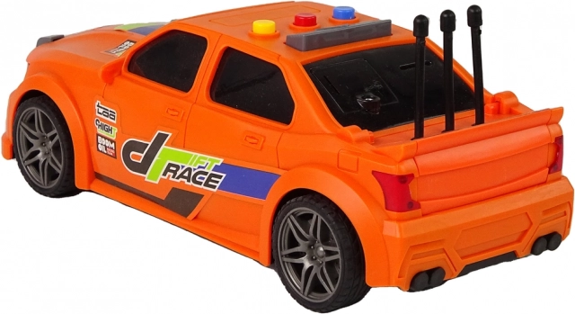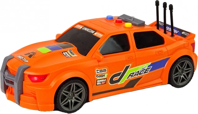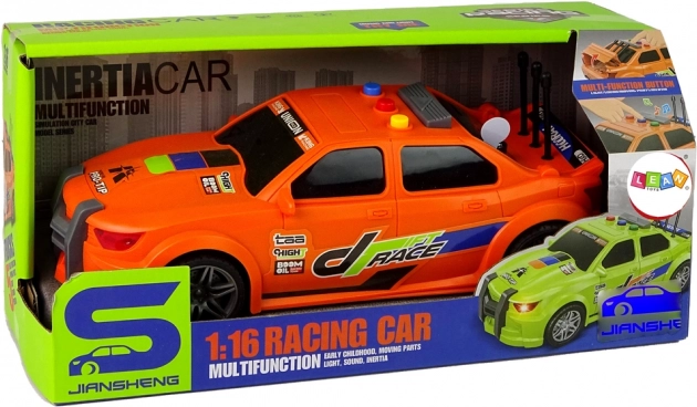 La voiture de course orange avec ses marquages voyants, ses éléments sportifs et ses détails soignés attire le regard dès le premier coup d’œil. Le plastique résistant supporte un jeu fréquent.