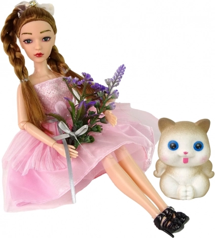 - Poupée Emily, chaton, bouquet de fleurs