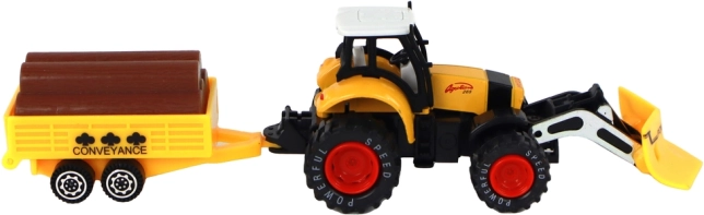 Le tracteur est équipé d'un mécanisme à friction qui permet de manipuler facilement le déplacement du tracteur. Les enfants peuvent jouer à la ferme et transporter divers matériaux sur la remorque, équipée d'imitations de troncs d'arbres.