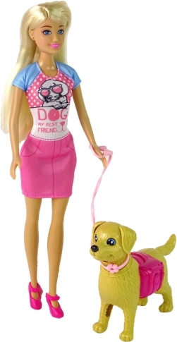 Adorable ensemble pour les amoureux des animaux : une poupée avec son chiot que tu peux nourrir, emmener en promenade avec une laisse et grâce auquel apprendre la soin et la responsabilité. La poupée a des membres articulés, le chiot réagit en bougeant sa queue, ses oreilles et sa gueule, et l’ensemble comprend également une gamelle avec croquettes, une laisse, une poubelle et une pelle.