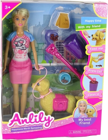 Avec ce set, les enfants plongent dans un univers d’imagination et de soin d’un animal de compagnie. Le chiot interactif peut être nourri avec des croquettes à répétition, et grâce à sa queue, ses oreilles et sa gueule mobiles, le jeu paraît naturel et amusant. La poupée aux longs cheveux blonds a des bras et jambes articulés, elle prend facilement des poses réalistes pour nourrir, promener et câliner.