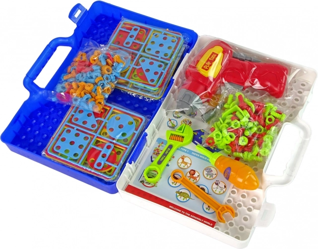 Le set comprend des vis de différentes couleurs (vert, rouge, bleu, orange) ainsi que des clés colorées, un tournevis et une visseuse. Les pièces de construction sont proposées en 4 formes et 4 couleurs, offrant d’excellentes possibilités pour créer des constructions et d’autres chefs-d’œuvre en 3D ainsi qu’en version dessin classique. Tous les éléments du set sont fabriqués en plastique de haute qualité.