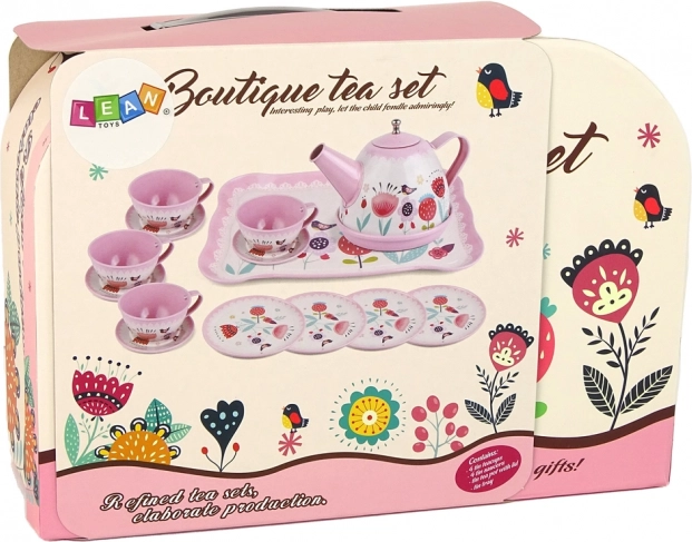 Emportez le goûter thé où que vous alliez ! Ce set de thé et café pour enfants en valisette est conçu pour un transport pratique et un amusement immédiat. Les pièces dans une élégante couleur rose avec de jolis motifs enthousiasmeront les enfants et les motiveront au jeu social, au développement de la communication et de l’imagination.