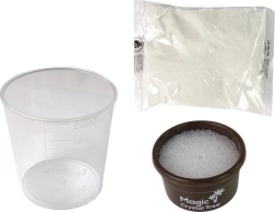 Un gobelet doseur, une poudre cristalline et la base de l’arbre permettent de réaliser toute l’expérience à la maison en toute sécurité et confort.
