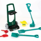 Un ensemble indestructible pour les petits passionnés d’activités en plein air et de jardinage. Le chariot de jardin est fabriqué en plastique de haute qualité, de couleur vert foncé, doté de deux grandes roues mobiles. Il est en outre équipé d’un panier noir pour les petits accessoires de jardin et d’une base noire stable, sur laquelle vous pouvez transporter les outils de jardin à l’aide d’une poignée confortable. Le chariot de jardin est une réplique du design populaire de la marque Bosch. Les accessoires du chariot comprennent une pelle et un râteau robustes de couleur verte en plastique de qualité, ainsi qu’un arrosoir jaune, une petite pelle de jardin rouge et un râteau à sable. Particulièrement apprécié: le coupe-bordures vert, qui émet un super bruit de cliquetis lorsque la roue tourne. Participer au jardinage n’est pas seulement un amusement pour les enfants, cela entraîne aussi la motricité, la pensée spatiale et constitue un exercice sain à l’air frais.