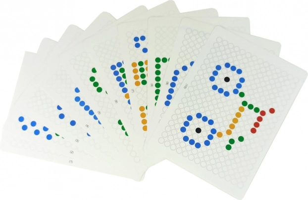 Le jeu consiste à disposer les perles sur le plateau selon vos propres idées ou en utilisant 20 modèles différents inclus dans le set. C’est non seulement un divertissement fantastique, mais aussi une excellente occasion de développer la motricité fine et la coordination œil-main de votre enfant.