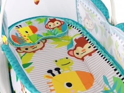 Il comprend également un arceau amovible avec des jouets, tels qu'un lion en peluche et une girafe, qui stimulent parfaitement les sens de l'enfant. Le produit propose également des motifs d'animaux joyeux, qui captivent l'enfant.