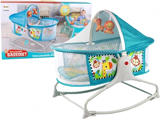 Lit bébé multifonctionnel 2 en 1 avec vibrations et rembourrage bleu