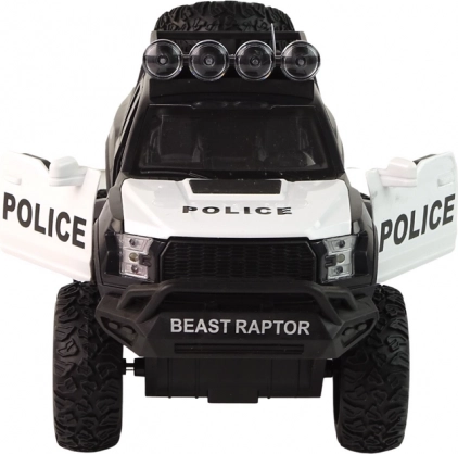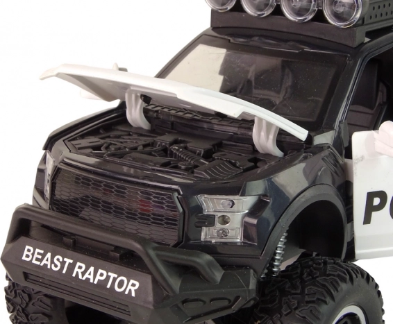 Véhicule de police tout-terrain Raptor noir, portes ouvrantes, feux et sons