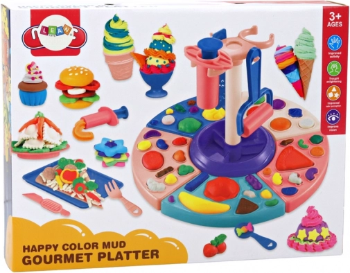Ce set de modelage richement équipé est idéal pour tous les petits passionnés de cuisine et de création. Grâce aux 10 couleurs vives de pâte, les enfants peuvent combiner, mélanger et façonner de délicieuses créations – des coupes glacées aux mini-pizzas.