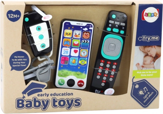 Un ensemble de jouets réalistes qui offrira à votre tout-petit beaucoup de plaisir et la possibilité de découvrir le monde de manière ludique et éducative ! Notre set comprend des clés de voiture, une télécommande et un smartphone – des objets que les enfants aiment imiter après avoir observé les adultes.