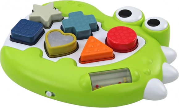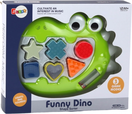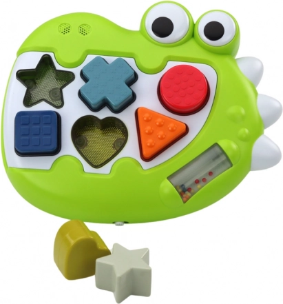 Ce dinosaure interactif associe jeu malin et stimulation sensorielle. Une fois allumé, les ouvertures pour les formes s’illuminent et, lorsque la pièce est insérée correctement, une mélodie joyeuse retentit, motivant l’enfant à recommencer. Les enfants apprennent naturellement à reconnaître les formes et les couleurs, exercent la coordination œil-main et découvrent des stimuli sonores et tactiles.