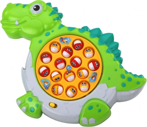Jeu amusant de pêche aux poissons au design dinosaure. 2 cannes, bassin rotatif, effets sonores. Développe la motricité. CE, EN71. Âge 3+.