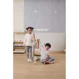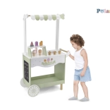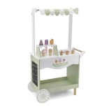 Le grand stand de crème glacée en bois est idéal pour les enfants qui aiment jouer au vendeur. Le stand est équipé de crèmes glacées factices et de cornets, ce qui stimule la créativité et le développement de la motricité.