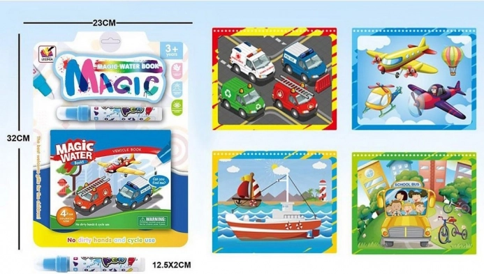 Coloriage magique avec moyens de transport pour enfants 3+. Divertissement créatif, développement de la motricité fine. Format pratique 31 × 23 cm, emballage carte blister.