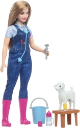 La poupée Barbie 65th Anniversary Careers permet aux enfants d'explorer divers métiers et rêves. Cet ensemble de vétérinaire à la ferme contient une poupée stylée et dix accessoires axés sur son travail.