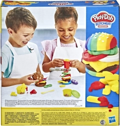 Avec le set Play-Doh Cuisine Burger et Frites, les petits chefs en herbe peuvent plonger dans un monde de jeu créatif. Le set comprend :