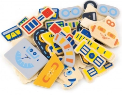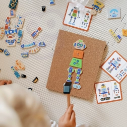 Découvrez un jeu amusant et éducatif pour petits constructeurs – un panneau à clouer en bois VIGA sur le thème des robots. Le set comprend 45 pièces en bois colorées, une planche en liège, un marteau en bois, des punaises et des cartes modèles. Les enfants développent leur motricité fine, leur raisonnement logique, leur concentration et leur créativité en fixant les formes sur la planche selon leur imagination ou d’après les modèles.