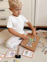 Le set comprend des cartes d’instructions avec 10 propositions de robots, qui aident à reconnaître les formes, à améliorer la coordination œil–main et la patience. Les enfants peuvent créer selon les modèles ou en toute liberté, ce qui stimule la pensée créative et l’autonomie.