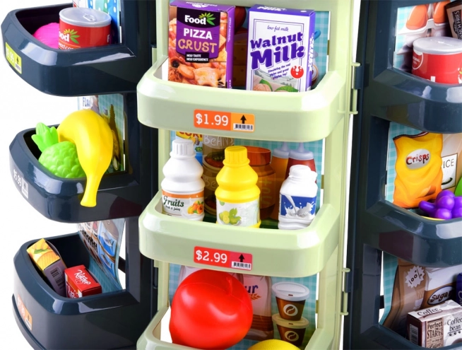 Rangez les produits sur les étagères, affichez des promotions et remplissez le panier de « gourmandises » préférées. Transport et rangement des pièces faciles.