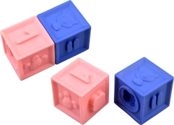Les cubes sont fabriqués dans un matériau souple et non toxique, agréable au toucher, sûr pour être mâchouillé et adapté dès 3 mois.