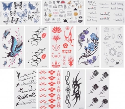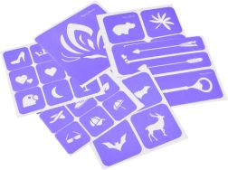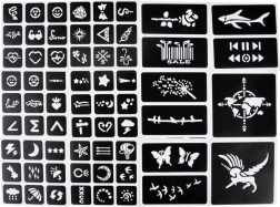 • Variété immense : 18 feuilles de pochoirs avec de nombreux motifs et tailles + 12 feuilles de tatouages à l’eau.