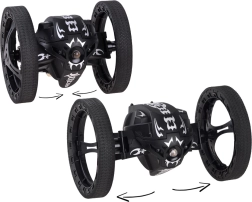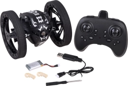 La voiture sauteuse télécommandée est équipée de roues en mousse montées sur des bras flexibles, permettant d'allonger ou de raccourcir l'essieu. Cette fonction unique améliore la manœuvrabilité et permet d'effectuer diverses cascades. La voiture dispose de phares LED à l'avant, ce qui permet de jouer même par faible visibilité.