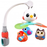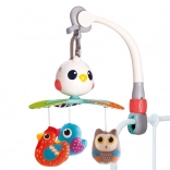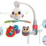 Ce magnifique mobile pour enfants est conçu pour stimuler les sens visuel, auditif et tactile de votre enfant. Des chansons éprouvées et des mélodies agréables garantissent que bébé reste satisfait et apaisé. La structure rotative est complétée par des jouets suspendus en forme d’oiseaux multicolores, invitant à la préhension et au toucher.