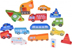 Les pièces en bois colorées en forme de véhicules familiers favorisent le développement du vocabulaire, l’apprentissage des couleurs et des premiers nombres – idéal pour les enfants d’âge préscolaire.