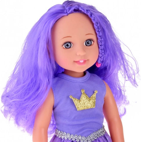 Une élégante poupée aux longs cheveux violets et accessoires de coiffure ravira chaque petite princesse. Elle possède des membres articulés, de riches cheveux coiffables et porte une robe violette avec une couronne dorée et une ceinture argentée. Inclus: un peigne rose et de petits chaussons de danse roses pour des histoires sans fin et un jeu créatif.