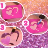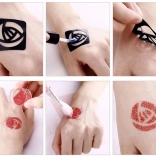 Mode d’emploi : Choisissez un pochoir et collez-le sur une peau propre, appliquez le motif avec la colle, retirez le pochoir, ajoutez les couleurs de paillettes, et c’est prêt !