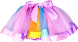 Vous rêvez de la jupe parfaite pour de petites danseuses ? Notre tutu multicolore avec dégradé arc-en-ciel et nœud rose est la pièce idéale.