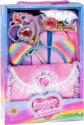Un collier doré avec petit cœur rose, des boucles d’oreilles assorties et des bagues ajoutent une touche de charme à chaque petite fée. Idéal pour toutes les occasions.