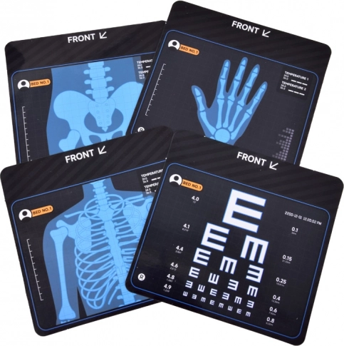 Insérez des cartes avec radiographie et tableau de vision dans la fente supérieure pour activer les sons de surveillance des fonctions vitales. Un excellent élément pour un cabinet réaliste.