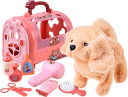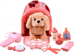 Découvrez un adorable kit de soins pour animal de compagnie : chien en peluche interactif dans une boîte de transport avec de nombreux accessoires pour jouer au salon de toilettage. Le chiot peut avancer, aboyer, remuer la queue et, lorsqu’on le caresse, émet des sons de chiot. Inclus : boîte de transport, peigne, ciseaux, sèche‑cheveux et autres accessoires – idéal pour un jeu créatif et réaliste dès 3 ans.